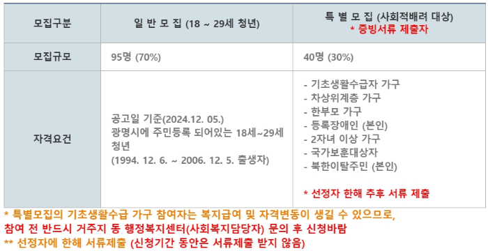 ● 공고일(2024.12.5.) 기준 광명시에 주민등록이 되어있는 18세 ~ 29세청년