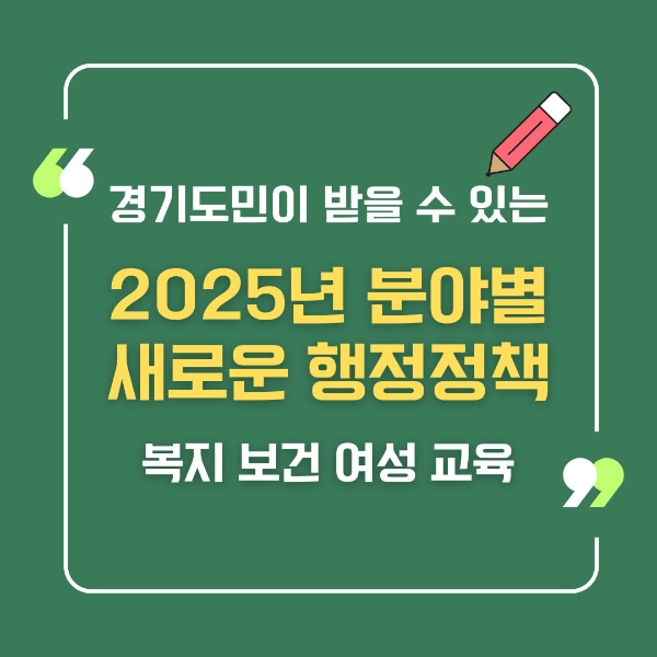 2025년 새해에 지자체들 마다 새로운 정책들을 시행한다는 발표하고 있습니다. 여러 분야에 다양한 시도가 진행되는 듯한데요. 이 포스팅에서는 경기도에서 2025년 복지와 보건, 여성, 교육 분야별로 새롭게 보일 정책들을 경기도 보도자료를 참고로 정리해 보겠습니다.