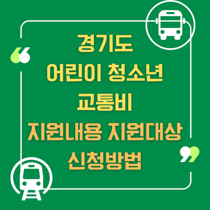 경기도 어린이 청소년 교통비 지원사업에 대해 정리해 보았습니다. 이 정책은 일상생활에 직접 도움을 받을 수 있는 내용이니 놓치지 마시고 신청해서 교통비 지원을 꼭 받으시길 바랍니다.