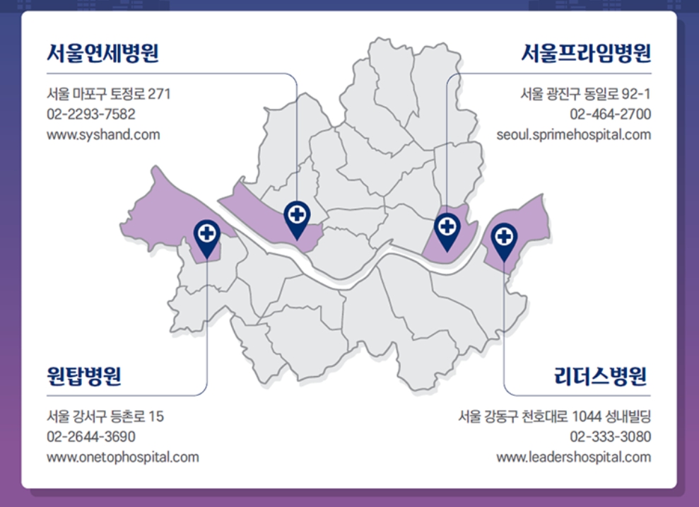 - 서울프라임병원 : 서울 광진구 동일로 92-1 / 02-464-2700
