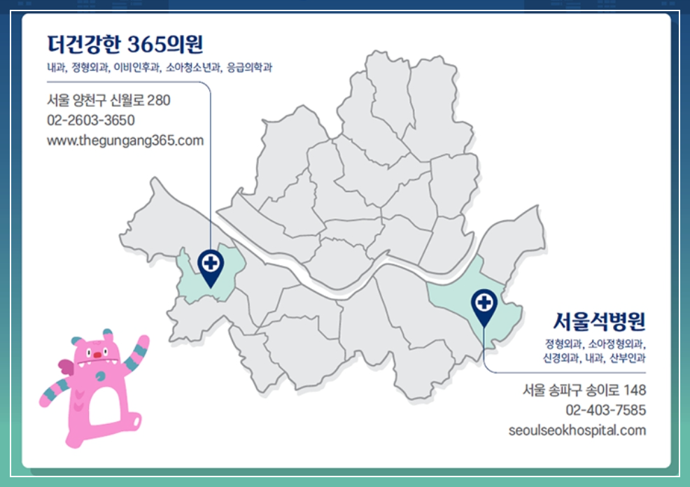 - 더 건강한 365의원 : 서울 양천구 신월로 280 / 02-2603-3650