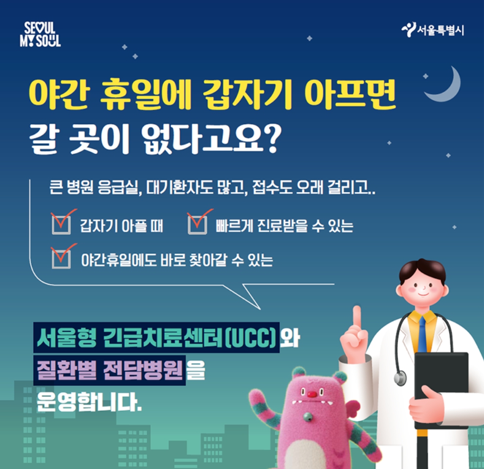 요즘처럼 병원에 의사가 부족할 때 갑자기 야간이나 휴일에 아프거나 다쳐서 병원에 가야 할 때 경증 질환이라는 이유로 응급실 진료가 힘든 난감한 상항이 생길 수 있습니다. 이런 상황에 이용할 수 있는 긴치급치료센터를 서울시에서 운영하는데요. 이 포스팅에서 휴일과 야간에 운영되는 서울형 긴급치료센터에 대해 살펴보겠습니다.