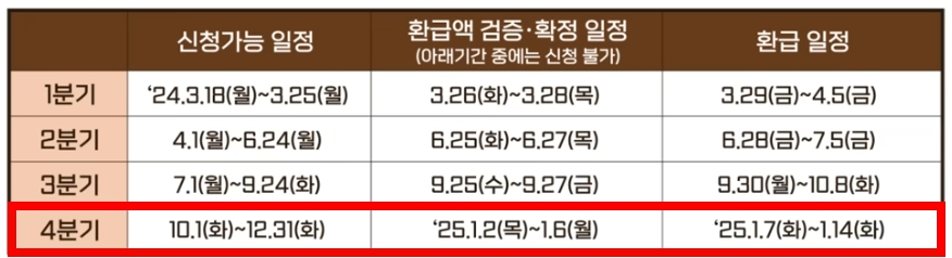 2024년 4분기 신청은 환급액 검증을 거쳐 2025년 1월 7일(화) ~ 1월 14일(화)