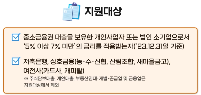 - 지원제외 금융상품 : 주식담보 대출(스탁론) 개인대출