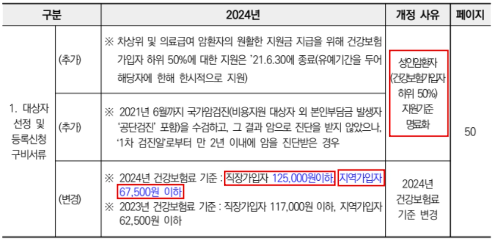 2021년 6월까지 위암, 간암, 대장암, 유방암, 자궁경부암 필수 국가암검진 1차 검사를 받고, 2년 이내(2023년 6월까지) 암진단을 받고 당해연도 건강보험 가입자 기준에 해당되는 자
