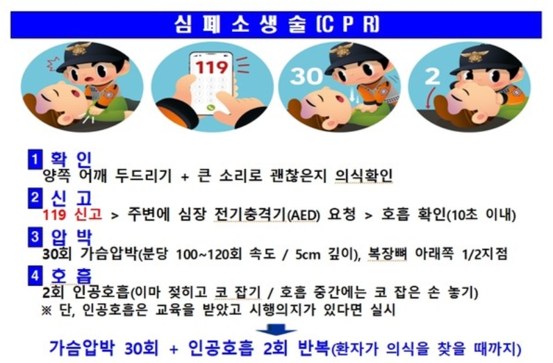 - 도움 요청 : 주변 사람들에게 알리고, 필요한 경우 119에 신고합니다.