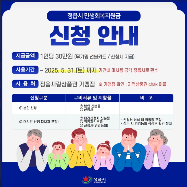 - 신청대상 : 2024년 11월 30일부터 정읍시에 계속해서 주소가 되어있는 시민