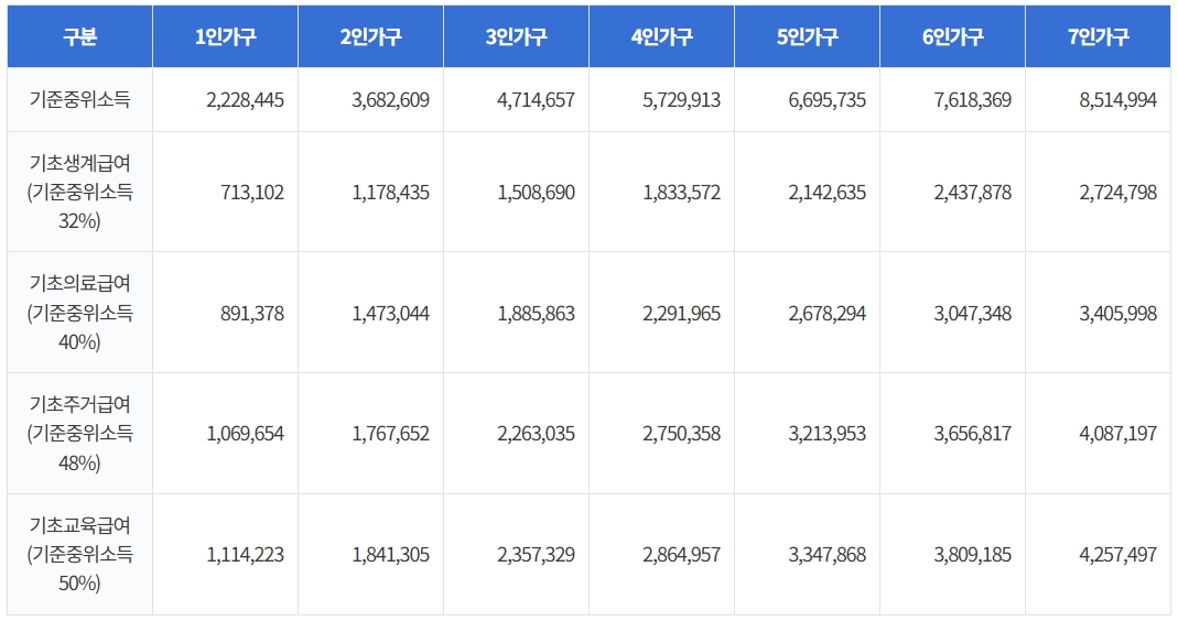 ※ 부양의무자의 연 소득 1억원(월 소득 834만원) 또는 일반재산 9억원을 초과하는 경우 생계급여 대상에서 제외됩니다.