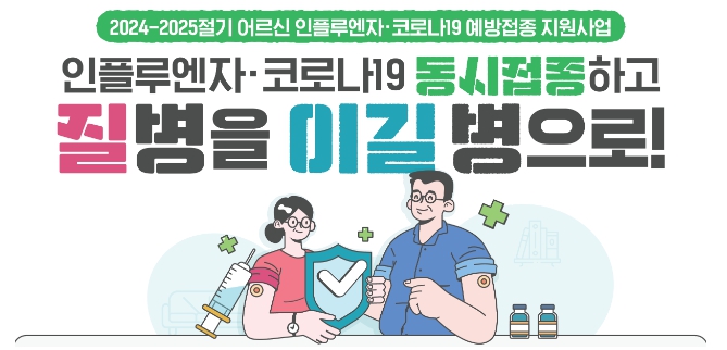 ※ 65세 이상 어르신은 코로나19와 인플루엔자 백신 동시 접종이 가능합니다.