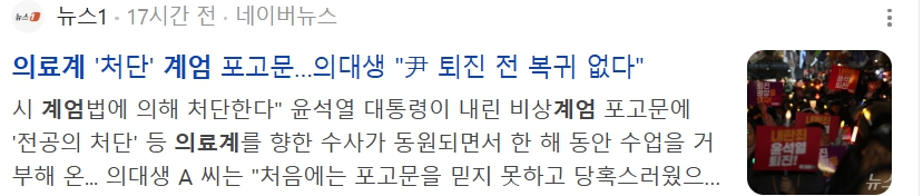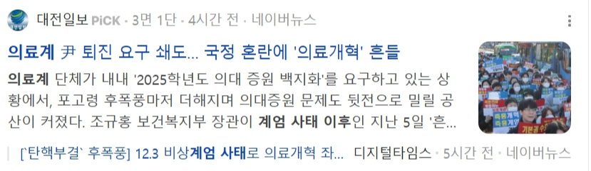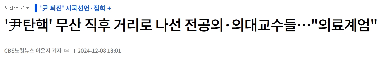 12월 7일 국회에서 탄핵안이 정족수 부족으로 폐기되었습니다. 물론 될때까지 매주 탄핵안이 올라간다고 하는데요. 불안하고 무서워서 될 때까지 해야된다고 생각합니다. 아파도 다쳐도 병원에 의사가 없어서 치료 못 받을까봐 걱정하는 국민, 언제 또 무슨일이 일어날까 불안해 하며 살아가는 국민, 이런 말도 안되는 상황이 21세기 대한민국에서 일어나고 있다는 것입니다. 의료계에서도 전공의와 의대교수들이 거리로 나섰는데요. 오늘 이 포스팅에서는 의료계와 관련된 몇가지 기사를 공유해 보려고 합니다.