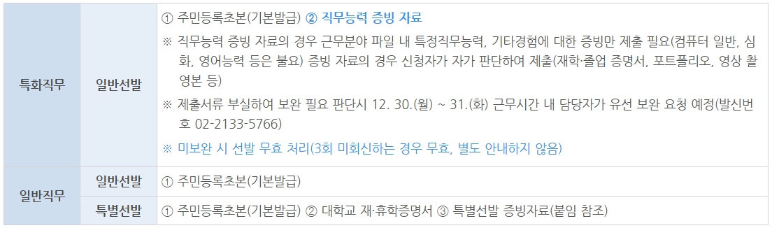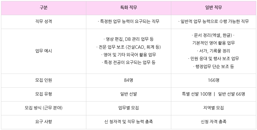 - 특화직무 : 근무분야별 일반선발 전산추첨