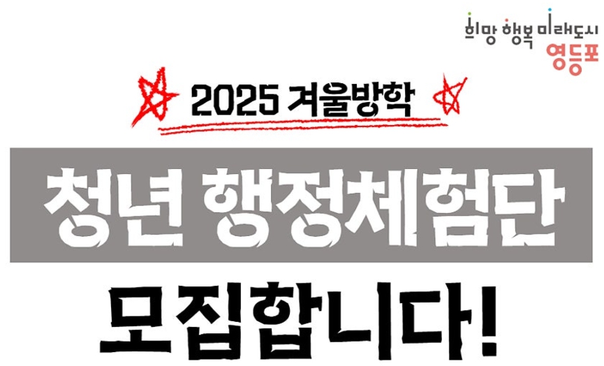 겨울방학 대학생 아르바이트가 청년행정체험단이라는 새로운 이름으로 모집을 진행 중입니다. 관공서의 행정업무를 체험할 수 있는 좋은 기회인데요. 이글에서 2025년 영등포구 청년행정체험단 모집내용을 정리해 보겠습니다.