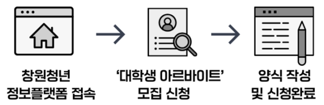 ■ 창원 청년정보 플랫폼 접속 > 대학생 아르바이트 모집 신청 > 양식 작성 완료 및 신청완료