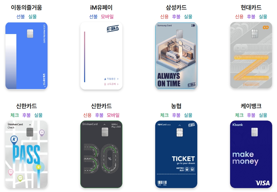 ● 가까운 은행이나 카드사 홈페이지에서 K패스 카드를 발급하고 K패스 홈페이지에서 회원가입하고 카드등록 후 대중교통을 이용하면 이용한 달의 다음 달에 본인 계좌로 환급 또는 결제금에서 차감되는 방식입니다.